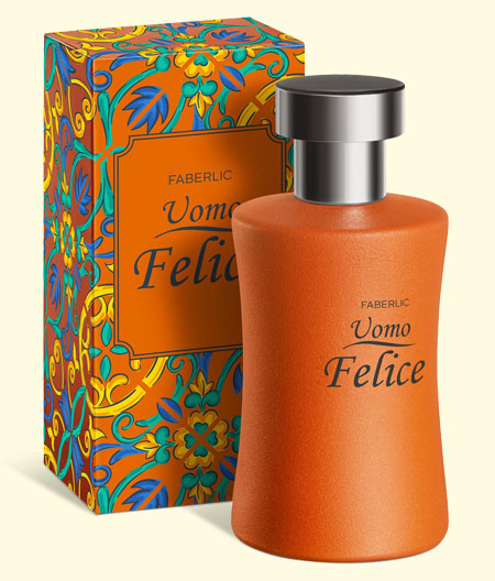 Парфюмерная вода Faberlic «Uomo Felice» для мужчин«У радости есть свой аромат. Аромат сицилийских цитрусов, искристый и задорный…». Французский парфюмер Пьер Бурдон описывает образ, вдохновивший его на создание дуэта ароматов Donna Felice и Uomo Felice: «Июльский полдень. На площадь старинного сицилийского городка влетает юркая Vespa. Он и Она мчатся прочь из города, туда, где ярко горят апельсиновые рощи. Цитрусовые деревья покрывают здесь все побережье, так что с моря остров кажется золотым. А в вышине — солнце — сочный грейпфрут в вазочке с ледяным шербетом из облаков». Направление: древесно-цитрусовый аромат. Верхние ноты: бергамот, сладкий лимон, мандарин, дыня, ананас, розмарин.